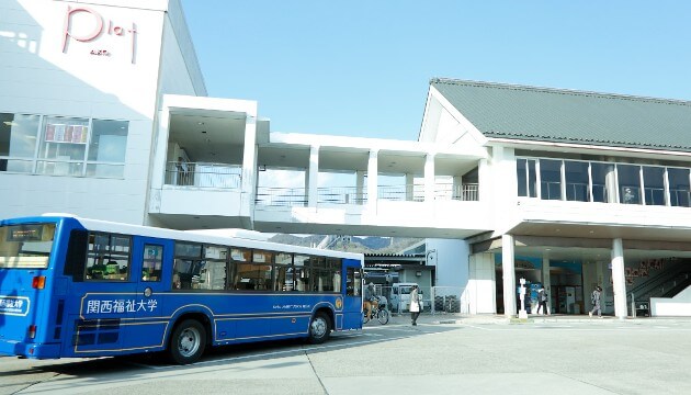 播州赤穂駅⇔大学間のスクールバス(PDF)が授業時間帯に沿って運行。所要時間は約8分で、京阪神地区からの直通JR新快速電車と合わせて、通学がより便利になりました。